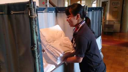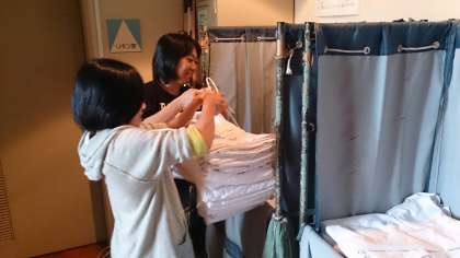 現在生徒たちは退所に向けた準備をしています。3日間 お世話になったシーツを返却するのもその1つです。