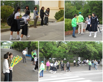 今朝は、少年センター水無瀬支部の皆さんも参加してくださって、一緒に生徒の皆さんを校門や生徒玄関前で出迎えました。