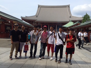 暑いですが、みんな元気です。有名な雷門は、工事中でした。