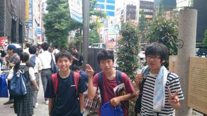 秋葉原です。お目当てのものが手に入ってご満悦の生徒たちに出会いました。