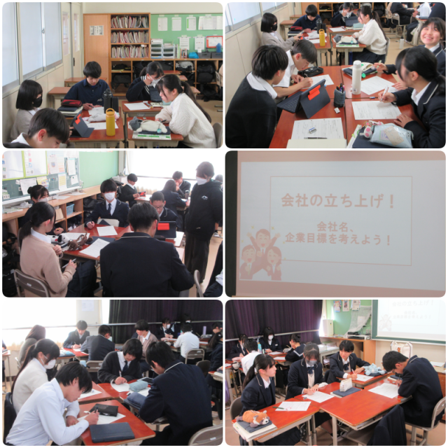 技術の授業では、グループごとに会社を立ち上げ、企業目標について話し合いました。