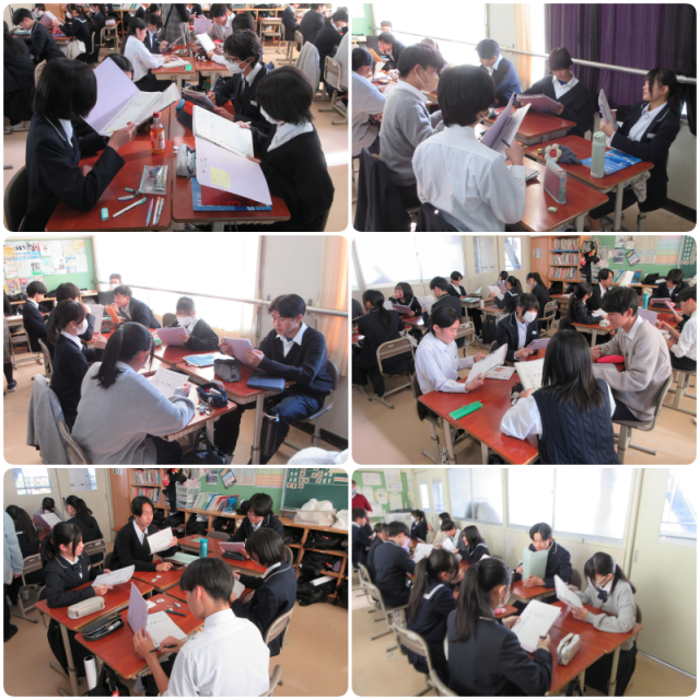 英語の授業では、クラスでアンケートを実施し、その結果をもとに各自がテーマを決め、グループ内で英語による発表を行いました。