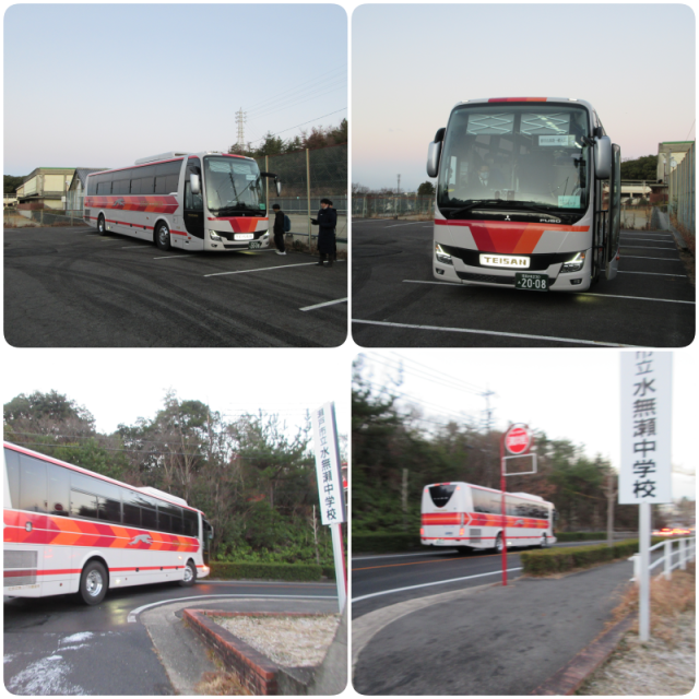 降雪による影響が懸念されましたが、受験者数が多い高等学校のご協力により、専用バスにて無事に出発いたしました。
