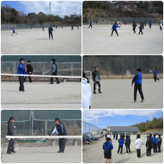 体育の授業では、ネット型スポーツの学習としてソフトテニスに取り組んでいます。