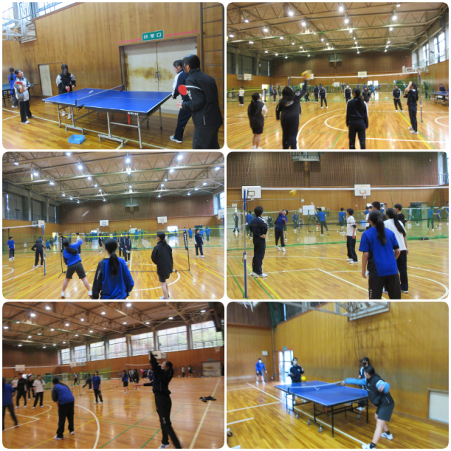 体育の授業では、来年度に実施予定の種目の体験を行いました。今日はアルティメットと卓球に取り組み、まずは基礎的な技能の練習を行いました。