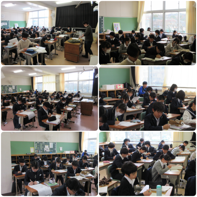 2月16日(火) 1・2年生学年末テスト・あいさつ運動 瀬戸つばき特別支援学校入試