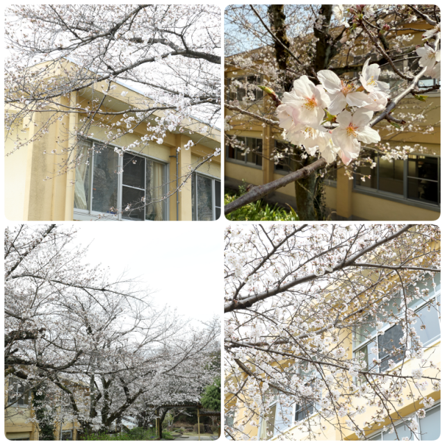 昨日、校内の桜が咲き始めました。入学式までもってくれるとよいのですが。