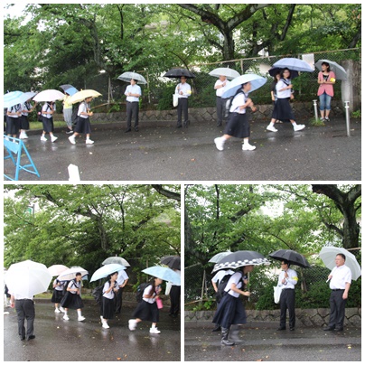 6月21日(水)の朝、少年センターやPTA生活部の皆さんが中心になって、「あいさつ運動」が行われました。風雨の強い、あいにくの天候でしたが、登校してきた生徒たちからも、さわやかな挨拶の声が聞がれました。大勢の方に参加していただき、ありがとうございました。