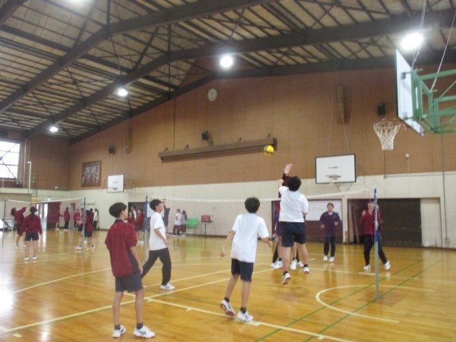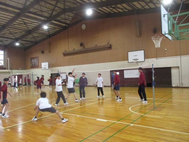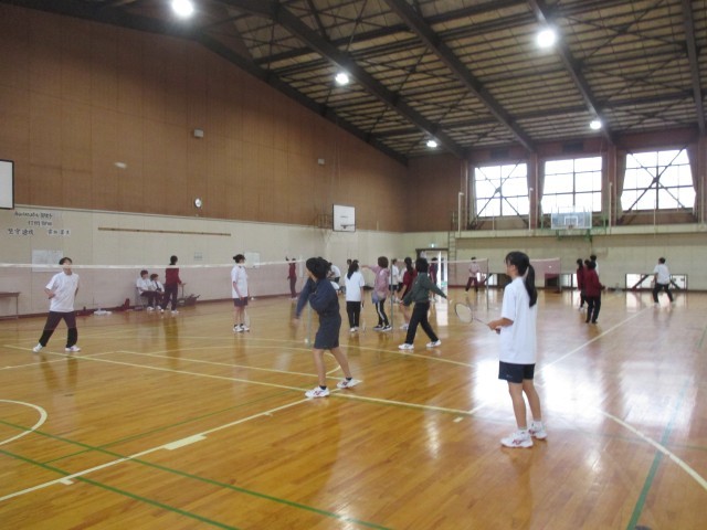 あいにくの天候のため、体育館では3年バレーと2年のバドミントン。アタックもスマッシュも決まると気分がいいですよね。ラリーが続くのも違う意味で嬉しいですね。
