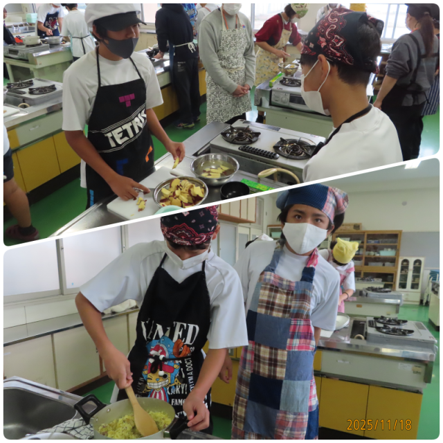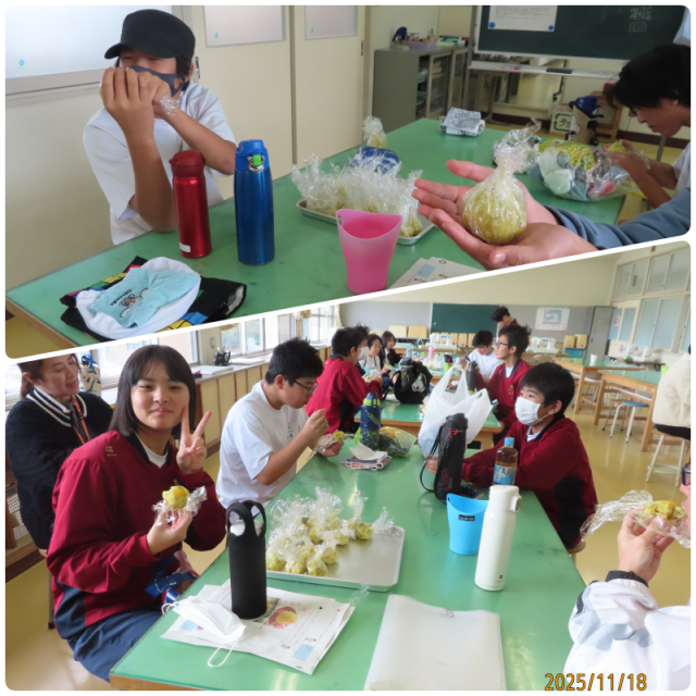 A組の畑で収穫したさつまいもを使って、調理実習をしました。作ったのは「さつまいもきんとん」です。1キロのさつまいもを切って、ゆでて、つぶして。作業工程は少ないですが、茹でている間に率先して洗い物をしたり、友達をさりげなくサポートしたりする姿にこれまでやってきた経験が活かされているなぁと感じました。まだまだあるさつまいも、次はどんな活動ができるでしょうか。