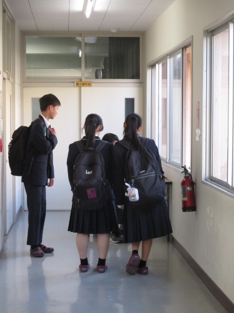 午後から職場体験の事前訪問に出かける2年生。初めて会う職場の大人と会話するのもいい経験です。