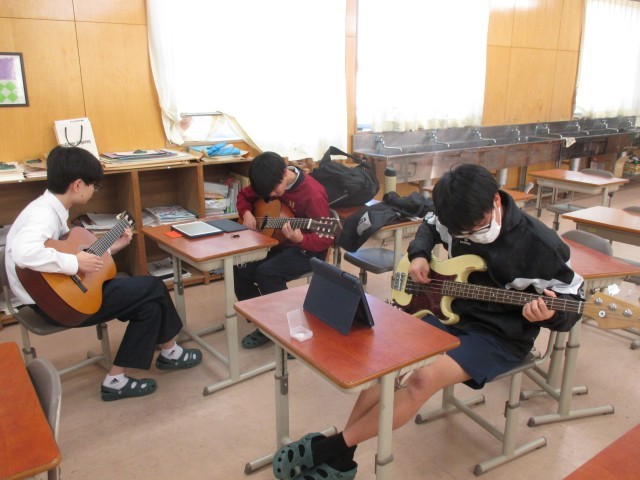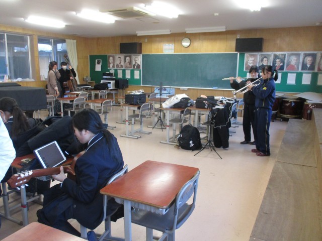 今日で3年生のSTPは最後です。芸術棟では、自分の興味ある楽器で演奏を楽しんでします。
