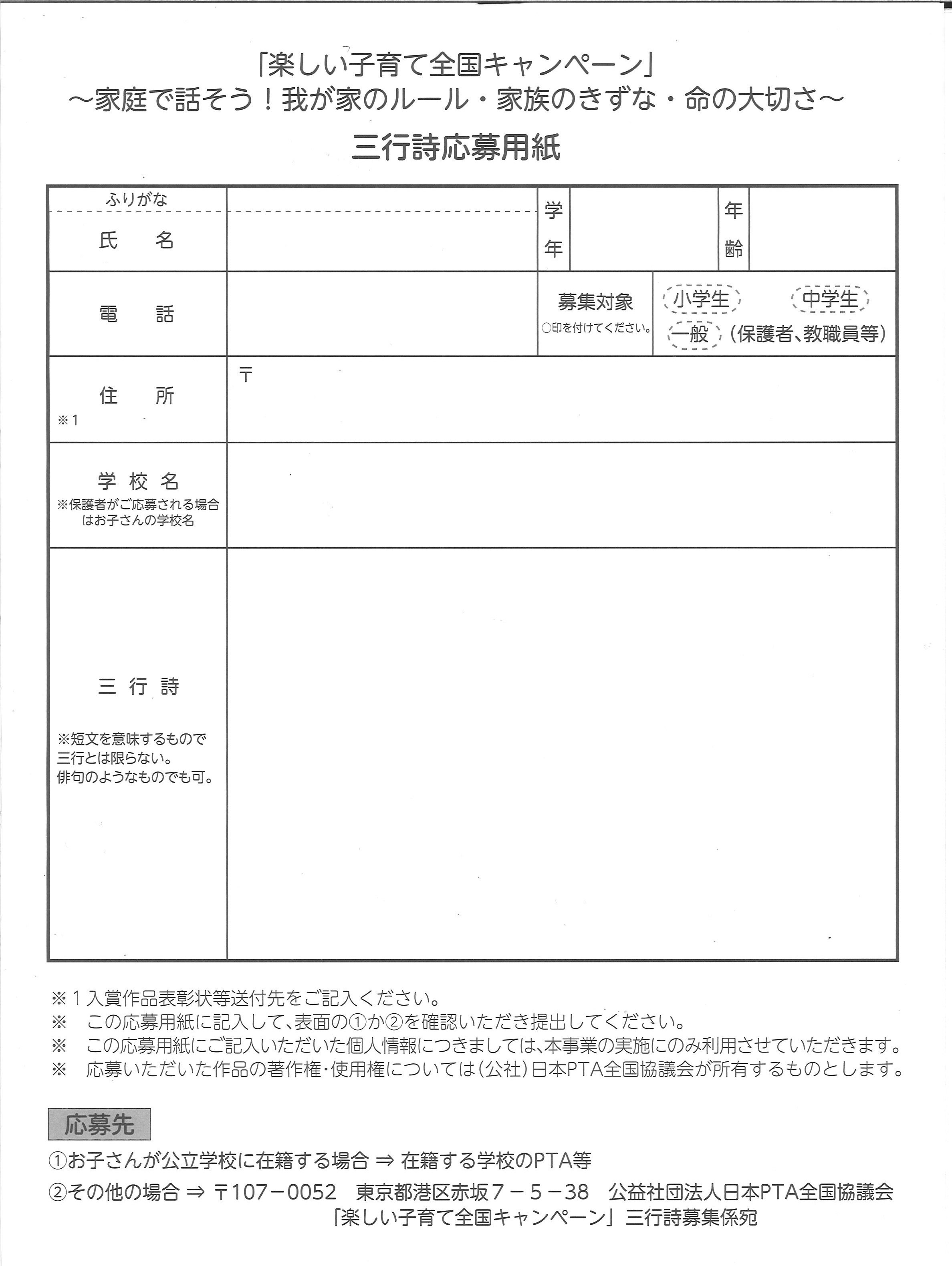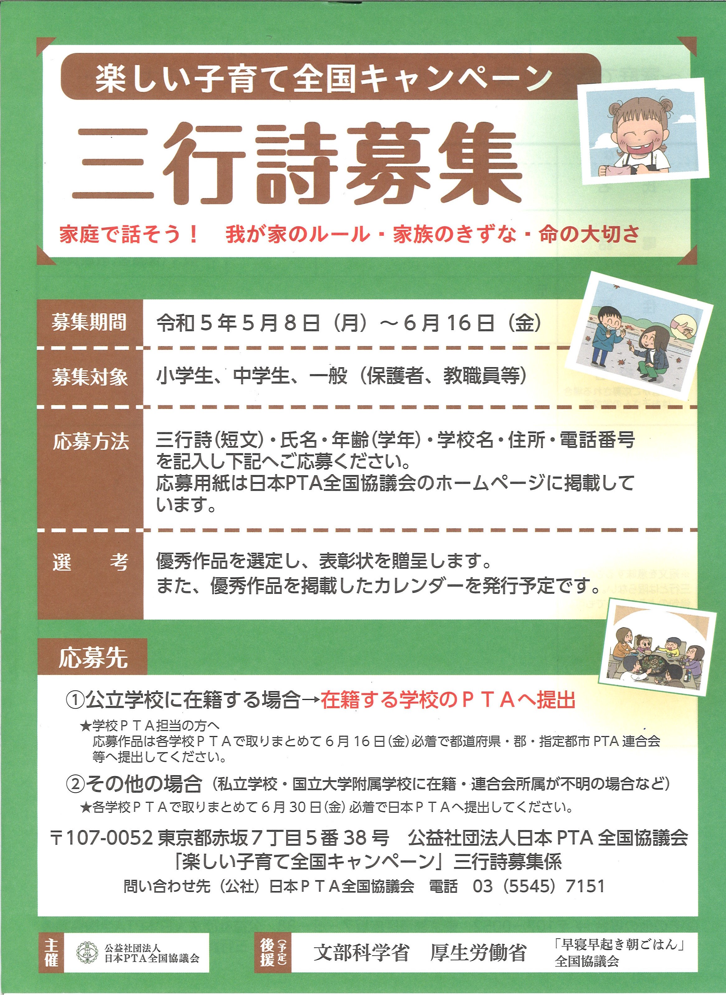 楽しい子育て全国キャンペーン「三行詩募集」(4月25日)