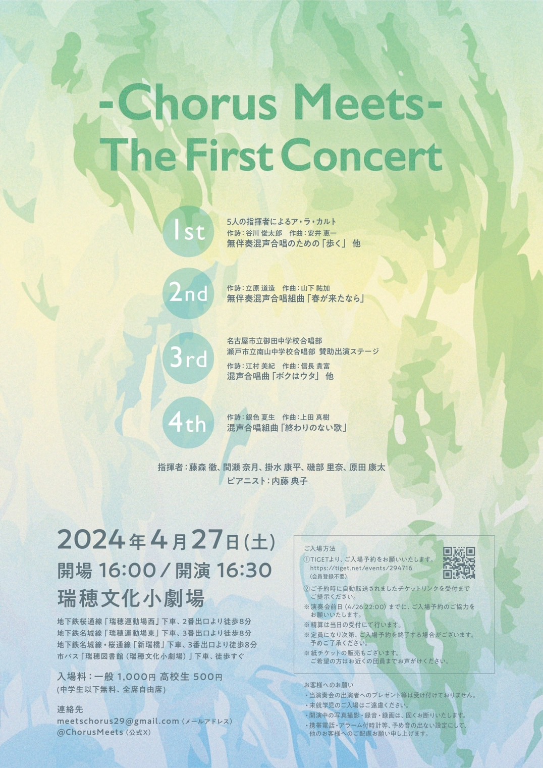 4月27日(土)に「-Chorus Meets- The First Concert」が瑞穂文化小劇場で開催され、本校合唱部が出演します。