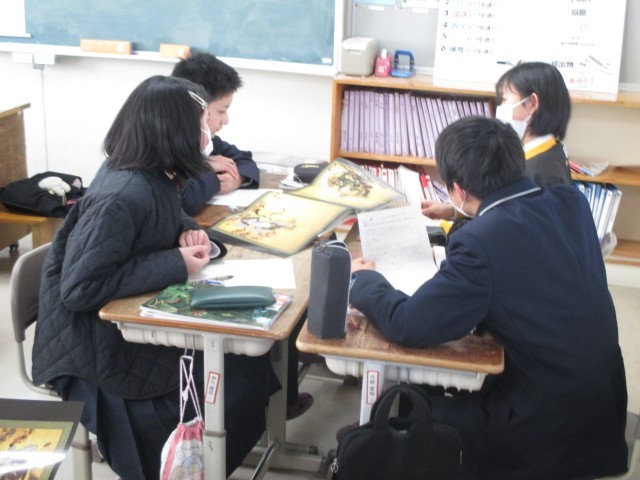 風神と雷神、どっちが好きですか?それぞれの特徴を観察した後、HSTの二者択一のように話を聞きあいます。小学校の修学旅行で見に行った生徒もいるのかな?