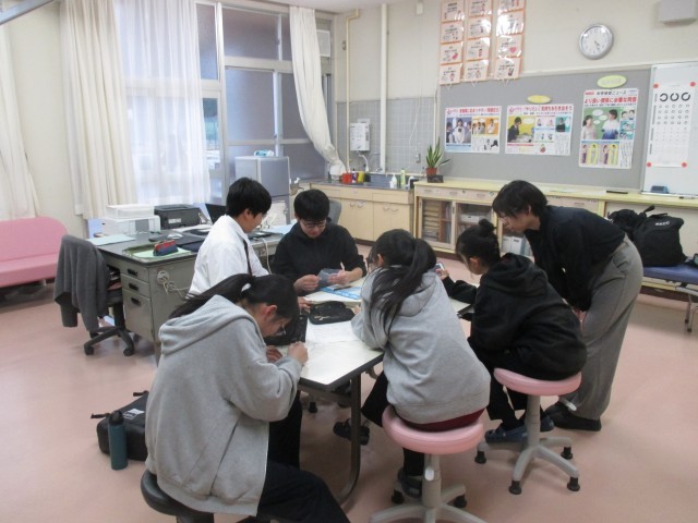 授業後、保健委員が保健室に集合。どのタイミングで、基本的な生活に関することを訴えるか作戦を練っていました。