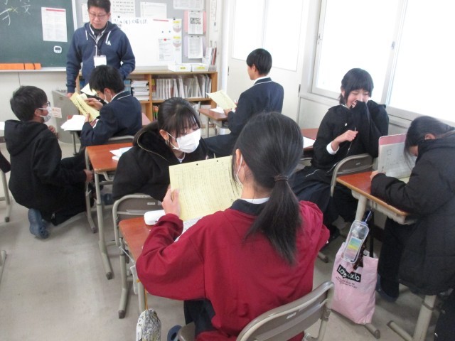 いのちの大切さを伝えてくださる講師を招いて、自分の生き方を振り返る2年生。小6でもよんでいる学校があり、久々の再開。始まる前に声をかける生徒も何人かいました。会が終わってから、とてもうれしかったことを話してくれました。