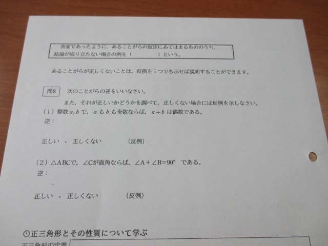 逆にすると成り立つことと成り立たないことを判別する2年の数学。いかに反例が浮かぶかです。