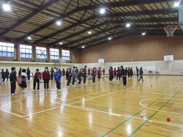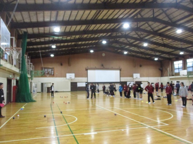 ボッチャを体験する1年生。福祉大学の先生が学生さんを連れてパラスポーツ体験のため来校しました。ちょうど来週から始まるパラリンピック。そして、10月から名古屋で開催されるアジアパラ競技大会に関心を持つととともに、障害に関係なく誰もが活躍できる社会の実現を目指す態度が育まれるといいなと思う一日でした。
