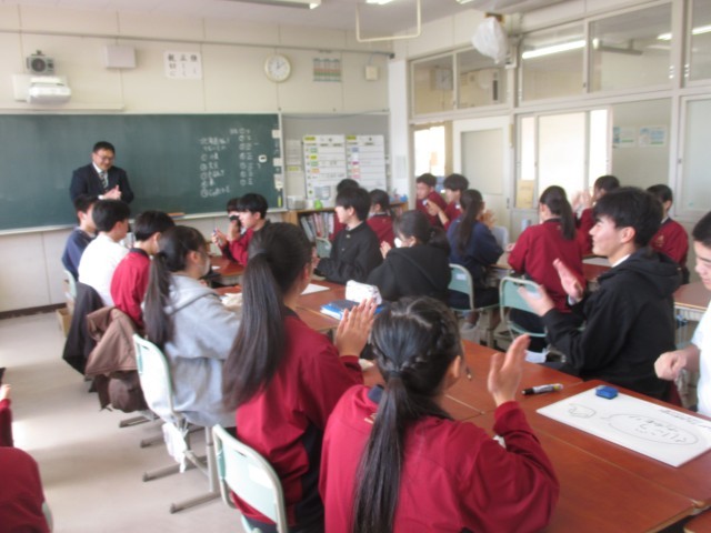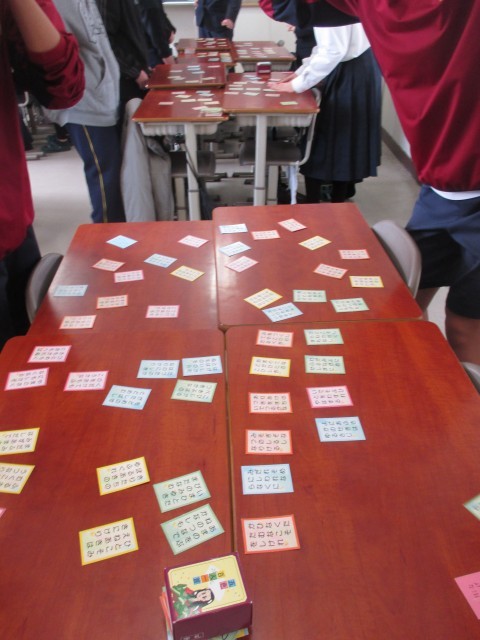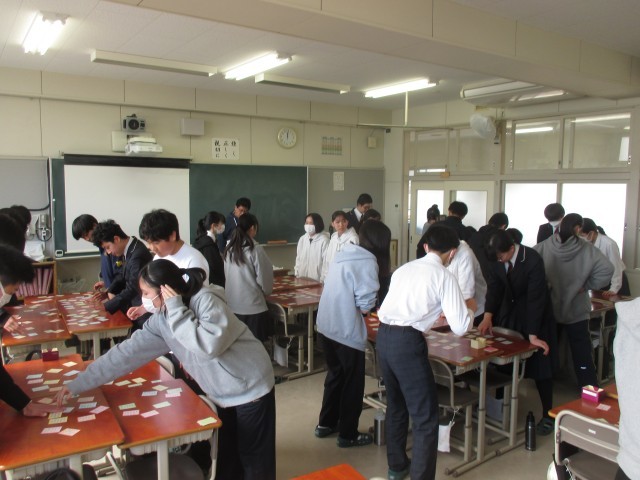 最後の授業を迎える3年生。国語では百人一首。上の句の途中でゲットしてしまう人も。