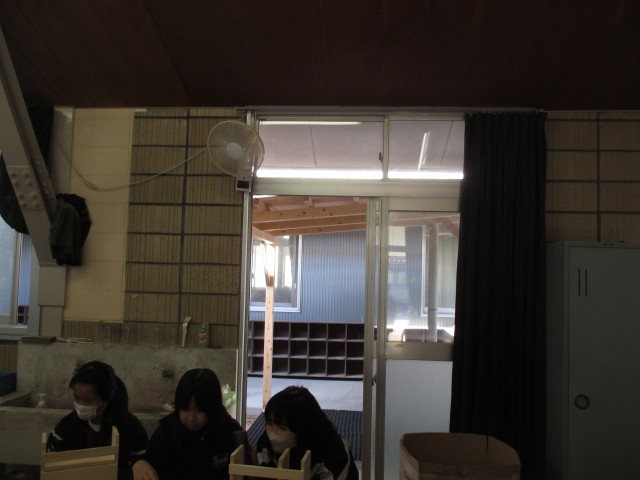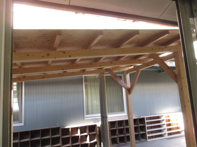 木工室の北側に屋根が出来上がっています。4月まで不便になるかも?