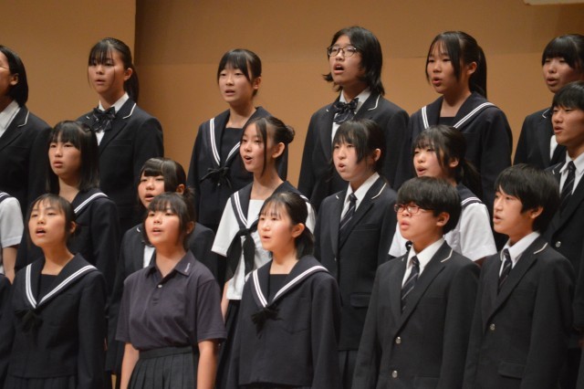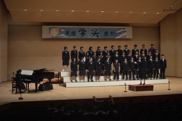 1組のしっとりしたトーンチャイムに始まり、1年、2年、3年生と順に学級ごとに合唱発表がありました。
