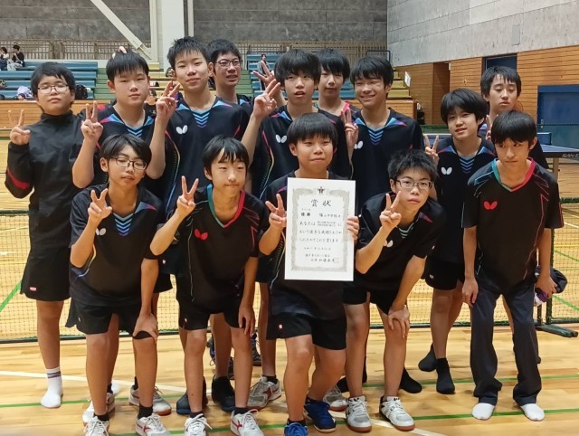 先日、瀬戸市民公園体育館において、第22回瀬戸地方中学校団体卓球選手権が開かれました。団体戦で行われ、本校の男子Aチームが優勝となりました。おめでとうございました。