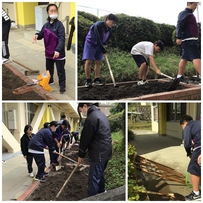 1組の生徒がサツマイモを収穫した後の畑には、タマネギを植えることにしました。今回の作業では、畝づくりに取り組みました。「畝を作るよ」と呼びかけると、生徒たちは必要な道具をそろえるため、道具置き場へすばやく移動していました。