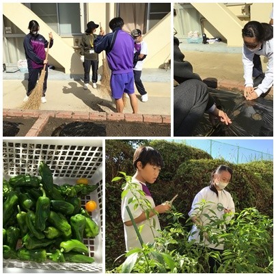 畝を作った後はマルチを張ったり、苗を植えるための穴を開けたりと、地域の方の指示を聞いて作業を進めていました。道具が少なかったこともあり、全員が一度に作業できない時間がありました。そのときには、ピーマンの収穫や汚れた箇所の掃除など、今の自分にできることを考えて行動に移していました。