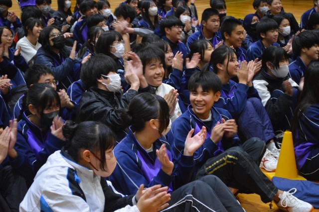 2年生・3年生は、瀬戸市文化振興財団の協力による「出前授業」プログラムの一環として、プロのギタリストをお招きし、演奏鑑賞会を行いました。途中、ギターを得意とする生徒も一緒にセッションし、弦が奏でるリズムの心地よさに、聴いていた生徒の表情はほころんでいました。講師の方が話された「プロのギタリストを志したきっかけ」を知り、自分の将来について考えるきっかけを得た生徒もいたようでした。