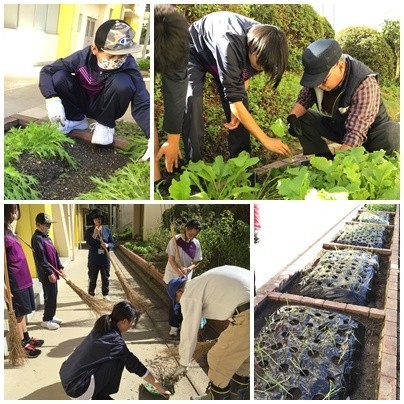また、小松菜や水菜の大きなものを選んで収穫しました。小カブやダイコンの間引きも行い、水洗いまで丁寧に行うことができました。カゴ3つ分も収穫することができ、生徒たちは喜んでいました。