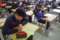 終わったテストの感想を述べ合ったり、次の教科の内容を確認し合ったりしています。着席時間が近づく直前まで、最終確認に余念がありません。