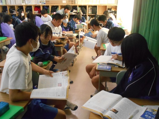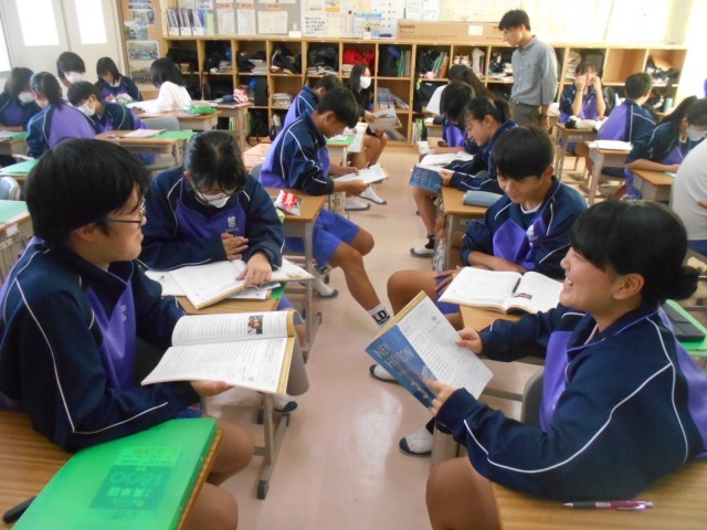 グループワークで、各段落の要点を伝えるための話し合いを行っていました。本日1限の他学級の研修DX会同様に、次時の公開授業活動へとつなげていく予定です。