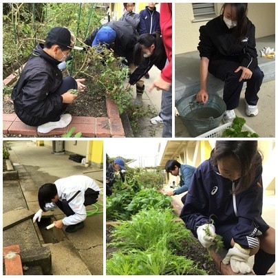 また、トマトの苗を処理したり、側溝の清掃に取り組んだりと、てきぱきと仕事をこなしていました。作業の合間には、地域の方との会話を楽しむ生徒もいました。