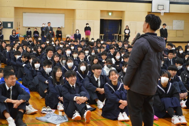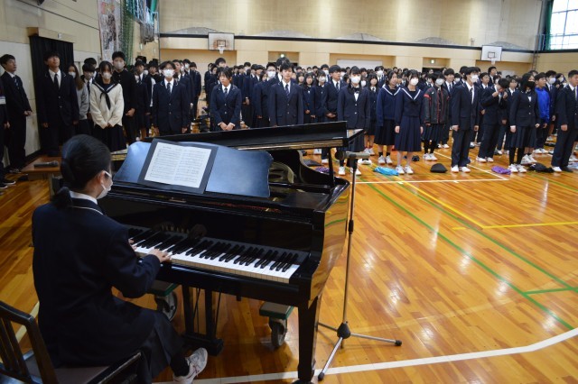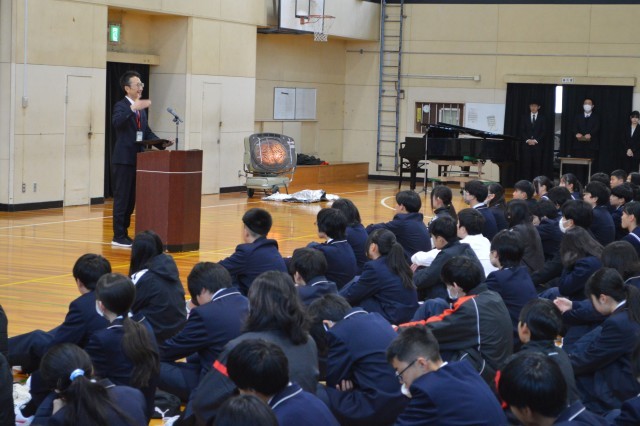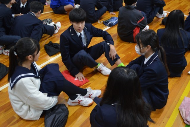 生徒指導主事の話では、「火」と「写真」の取り扱いについての注意喚起がなされました。具体的な事例を紹介すると生徒たちは真剣に耳を傾け、情報モラルの意識を高めていました。