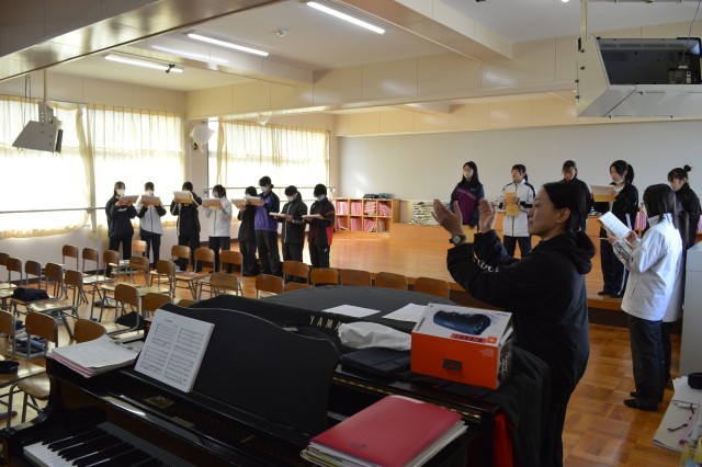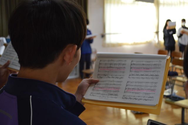 2年音楽では、卒業生に送る歌の合唱練習を行っていました。楽譜を見ることなく堂々と歌う生徒の姿は、初めてとは思えないほど自信にあふれていました。今後の練習で、完成度が高まっていくと思います。楽しみです。