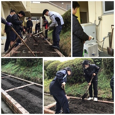 畑に植えている玉ねぎがまた大きくなりました。1組は、じゃがいもを植えるための畝づくりに取り組みました。まず、先週耕した畑の土を軽くほぐし、肥料や新たな土を入れてよく混ぜました。次に、混ぜ終わった土をシャベルを使って盛りました。最終的に、5区画分の畑に2つのずつの畝ができあがりました。雨を含んだ土は重さがありましたが、1時間で畑作業を終えることができました。また、3年生は今日で最後の畑作業だったため、地域の方へ感謝の気持ちを述べていました。