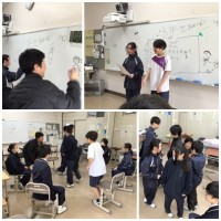 転がるカラーボールを同じ色の箱に入れ、正確に入った球の数を競うゲームです。ゆっくりであればそれほど難しくはありませんが、速度を上げると途端に難しくなります。2つのチームに分かれ、3回の合計数を競いましたが、どの生徒も接戦でした。