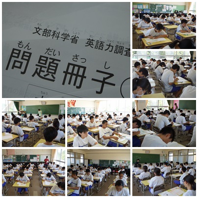 文部科学省による「英語力改善のための英語力調査」が3年生を対象に実施されました。調査は、リーディング・リスニング・ライティングに別れ、英語にかかわる学習・生活の状況を調査する質問の時間も合わせると、2時間5分にも及びます。
