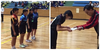 中学生女子の部で,幡山中女子卓球部のI・Aさんが,見事優勝しました。瀬戸市内の中学校の選手60人が出場する中,5戦全勝し,頂点に立ちました。