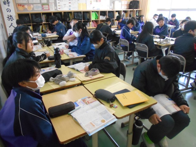 理科では、日本の季節風について高気圧から低気圧までの風の流れをもとに学習をすすめました。特に、日本付近での風のふき方をプリントにある地図に記入し、グループでの話し合いや発表や説明につなげて理解を深めていました。
