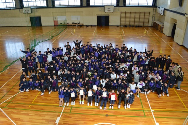 対抗戦の後、優勝クラスはエキシビジョンマッチとして教員チームとの対戦も行われました。一年間の学級・学年の団結力が感じられる時間となりました。