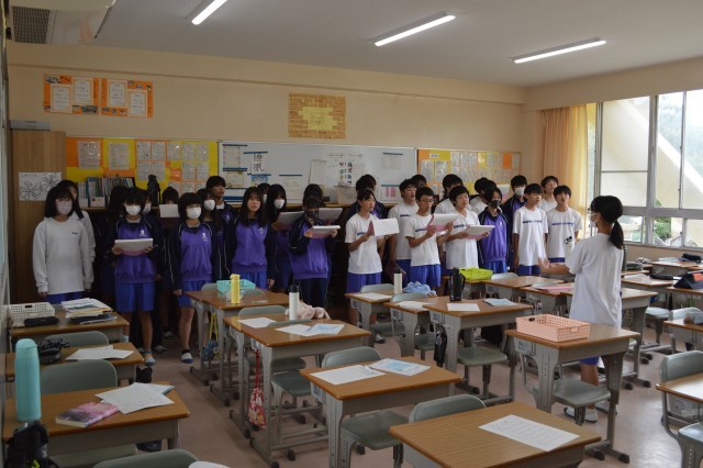 1・2年生と1組は通常授業です。2年生の理科の授業では、「デンプンは噛むと甘くなる」という内容を、楽しげな雰囲気の中で紹介していました。夏休み明けですが、生徒たちは少しずつ通常リズムを取り戻しているようです。