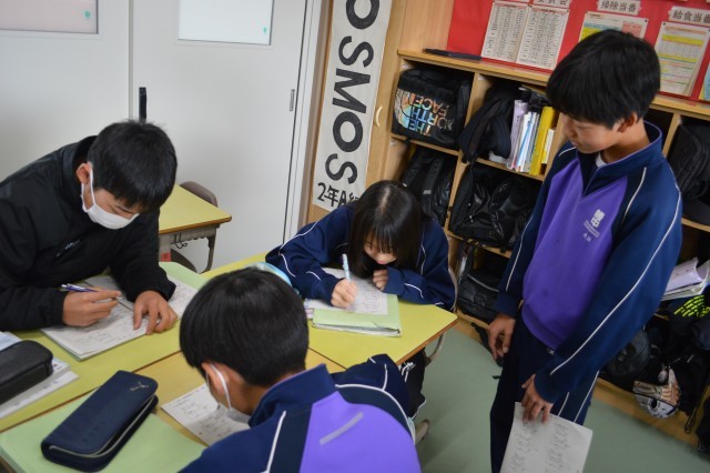 3年学活では、卒業期に向けた準備を進めていました。具体的な内容は明かせませんが、中学校生活を振り返る活動に、生徒たちはそれぞれ思いを巡らせているようでした。残り少ない学校生活も、有意義に過ごせるといいですね。
