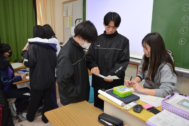 どの授業でも、生徒たちは互いに意見交換を活発に行っていました。「ハタトーク」で培ったコミュニケーションスキルの成果を感じる場面でした。