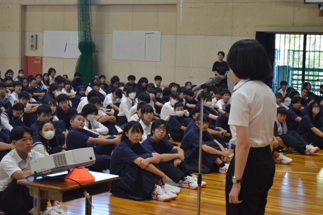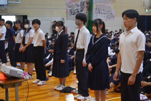 生徒会講話では、2学期最大の行事である「文化祭」についての話がありました。「常笑~笑顔満祭(えがおまんさい)~」のテーマの下、生徒たちの手でさまざまな準備や練習が進められます。皆で行事を盛り上げていけるとよいですね。