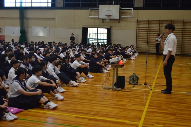 今週は火曜日が祝日のため、水曜日に全校集会を行いました。