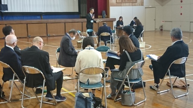 幡山地区の3つの学校や地域のみなさんが集まり、学校運営協議会を開きました。第1回目の持ち回り学校は、本校でした。