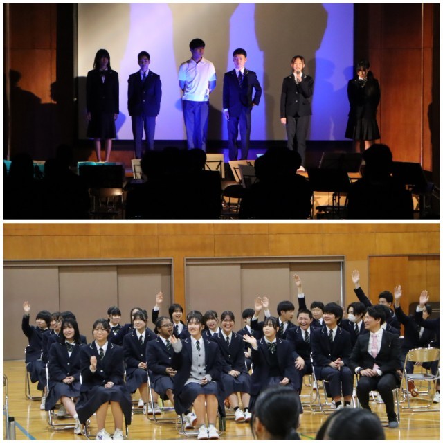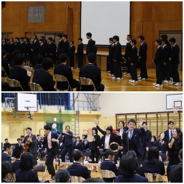 今日の1限は、本校の卒業生の元プロ・ラグビー選手の藤井達也さんに来校していただき、全校生徒に向けてお話をしていただきました。「環境は自分次第」「自分を変えるためには『考え方』+『行動』が大切だ」という言葉がとても印象的でした。2~4限目は2年生にタグラグビーを教えていただきました。最初は遠慮しながらやっていましたが、藤井さんの情熱的な指導で汗をかくほど楽しんで運動することができました。藤井さん、今日は本当にありがとうございました。