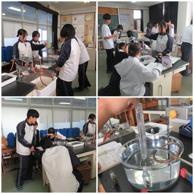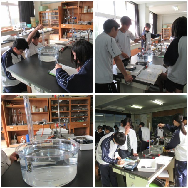 浮力の大きさに関係する条件を調べる実験です。体積、質量、深さをさまざまにして、何が関係しているかを確認します。